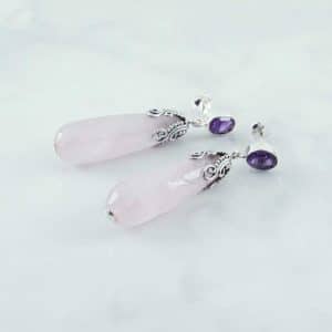 Rose Quartz With Amethyst Earrings
