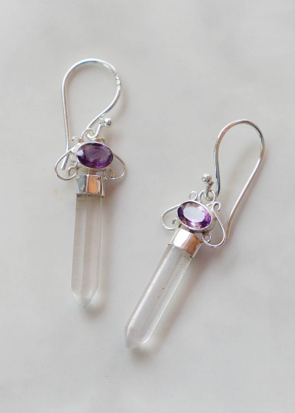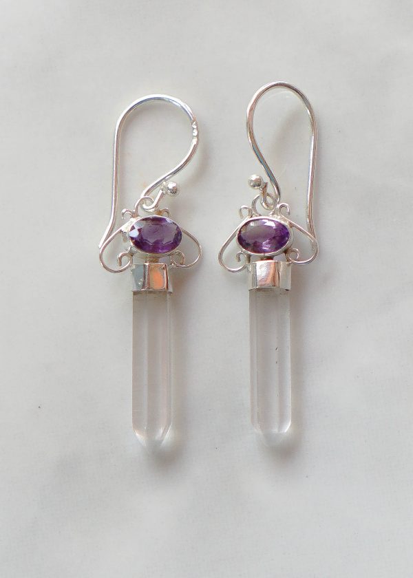 Stone Size: amethyst 4x6mm, clear quartz 4x20mm
