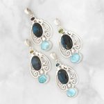 Stone: labradorite, with garnet, larimar.